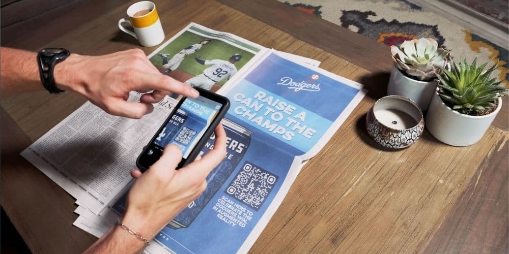 The LA Dodgers celebrated their 2020 World Series win by partnering with ABinBev’s Golden Road Brewing with a WebAR Face Effect complete with LA Dodgers branded baseball hats and a virtual beers. The “Raise a Can to the Champs!” experience was promoted in a full page ad in the LA Times where readers scanned a QR code which activated the WebAR experience created by Aircards. Using 8th Wall's Face Effects, fans virtually wore LA Dodgers baseball cap while opening a virtual can of Golden Road LA Dodgers' Blonde Ale Beer which triggered a visual celebration. Fans could also easily click to redeem a rebate on Golden Road Brewing products directly from the experience.